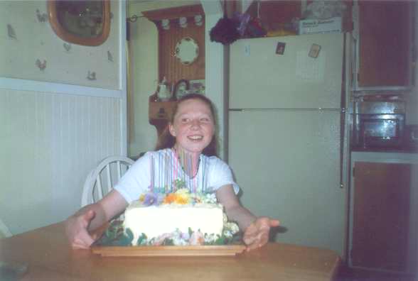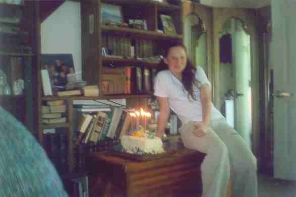 Becky's mom Bobbie Jo made her an apricot-almond butter 5 layer cake