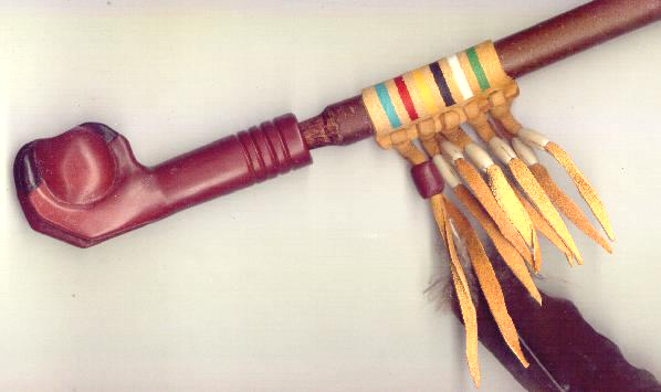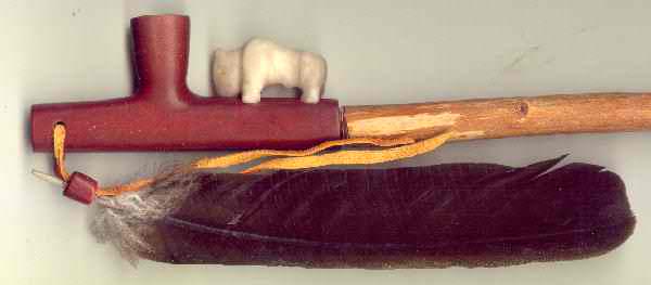 The fourth pipe is a small one, with many imperfections and blemishes, made from just a scrap of sacred red pipestone, but even a small one, imperfect though it may be, can be and is the symbol and messenger of Love and Hope and Peace and TRUTH, and an altar to Grandfather in respect and reverence.